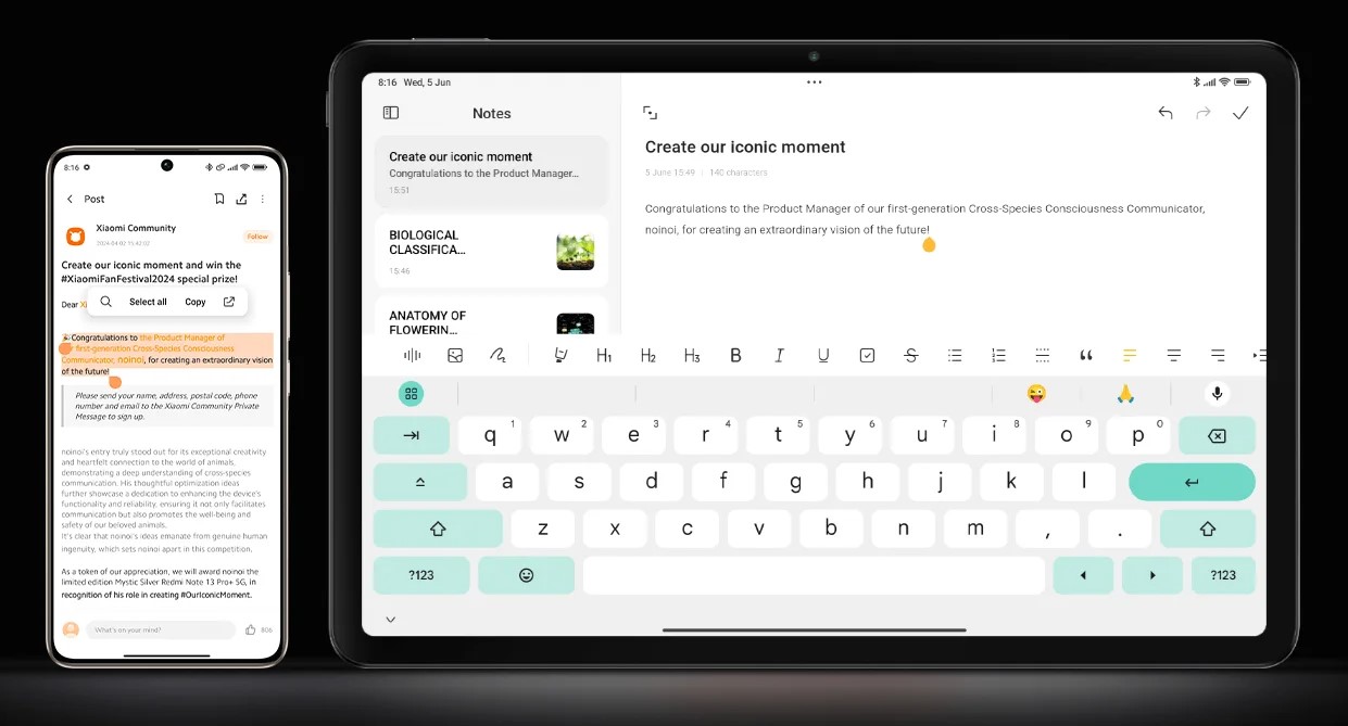 Наслаждайтесь более комфортным использованием большого экрана с 12,1-дюймовым флагманским дисплеем с классическим соотношением сторон 16:10, независимо от того, читаете ли вы, играете или смотрите фильмы. Благодаря сверхчеткому разрешению WQHD+ 2,5K и 249 ppi дисплей обеспечивает производительность профессионального уровня с кристально чистой точностью деталей.